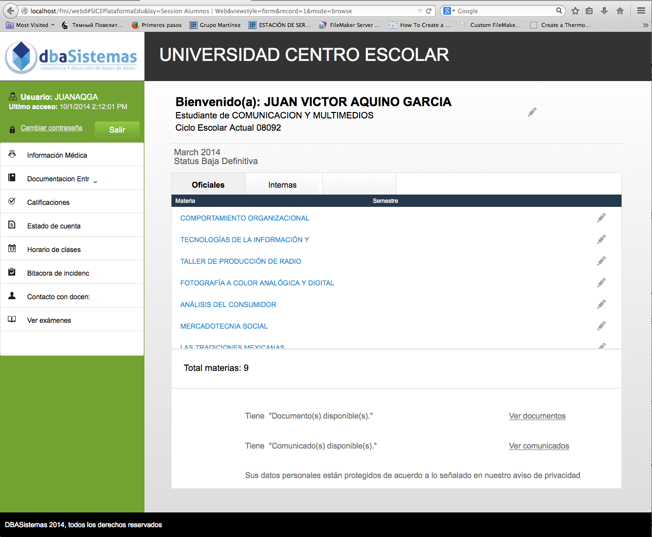 Los alumnos pueden consultar sus calificaciones, y estados de cuenta de colegiaturas.